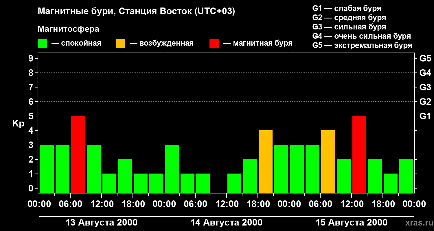 Магнитные бури локации Станция Восток — 15 августа 2000 года
