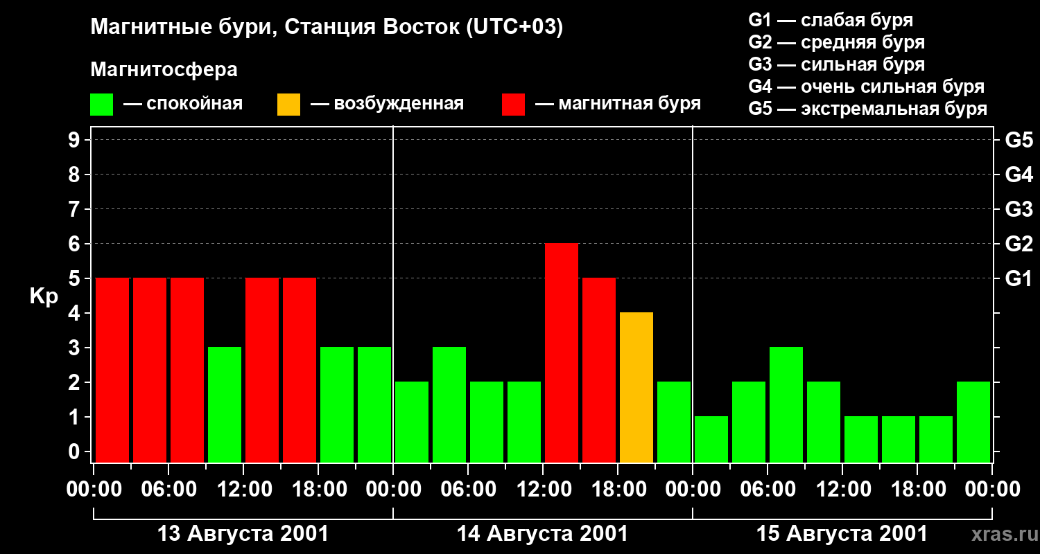 Магнитные бури локации Станция Восток — 15 августа 2001 года