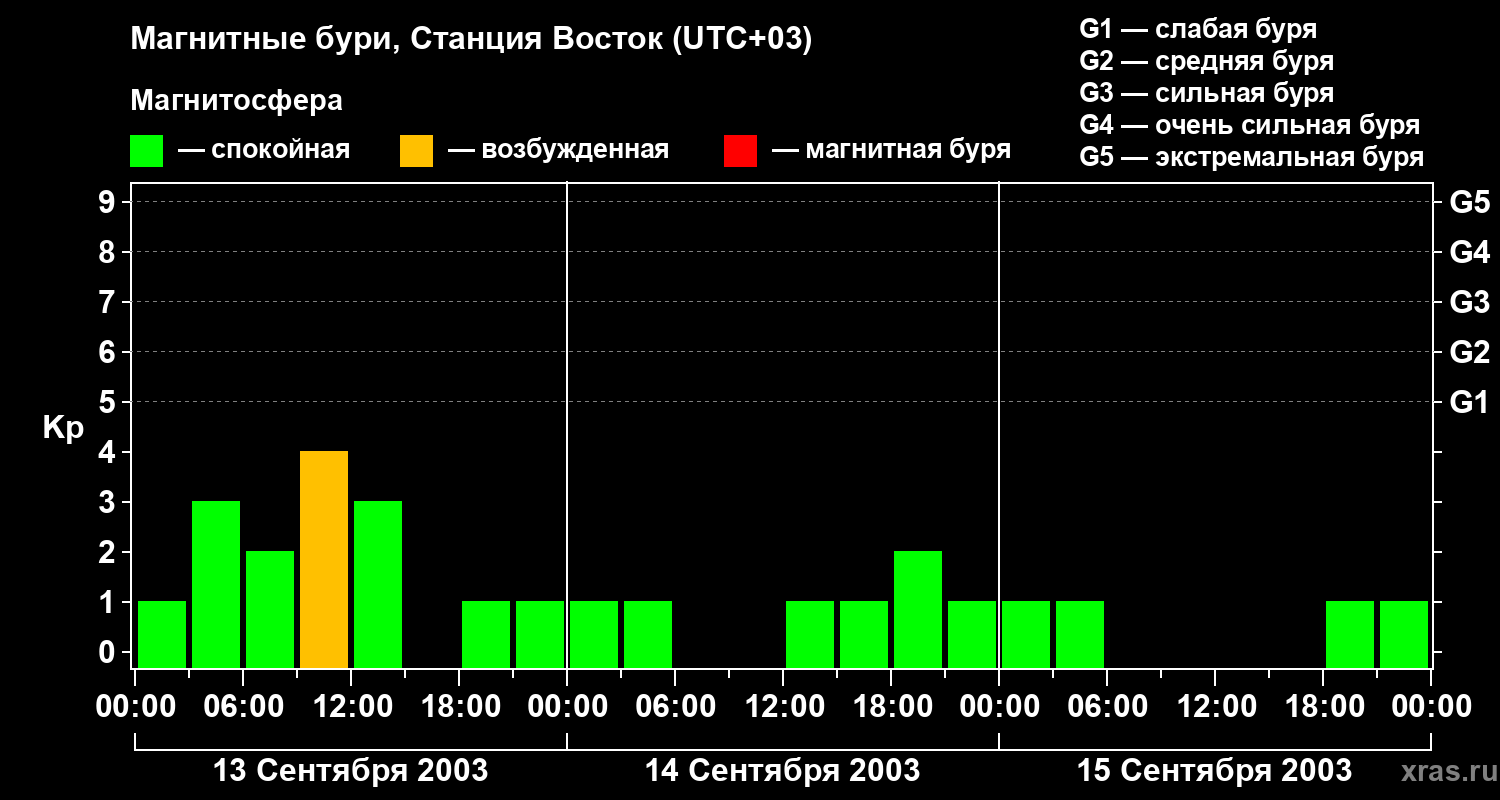 Магнитные бури локации Станция Восток в сентябре 2003 года