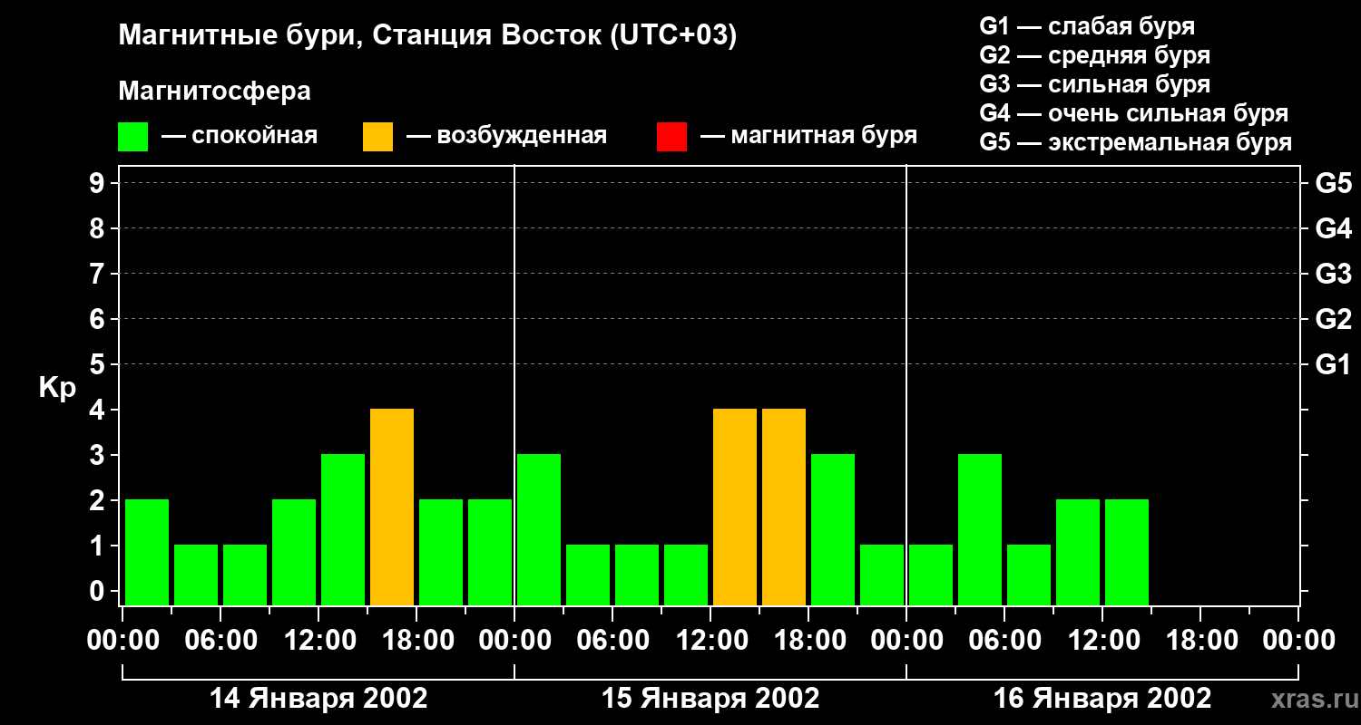 Магнитные бури локации Станция Восток — 16 января 2002 года