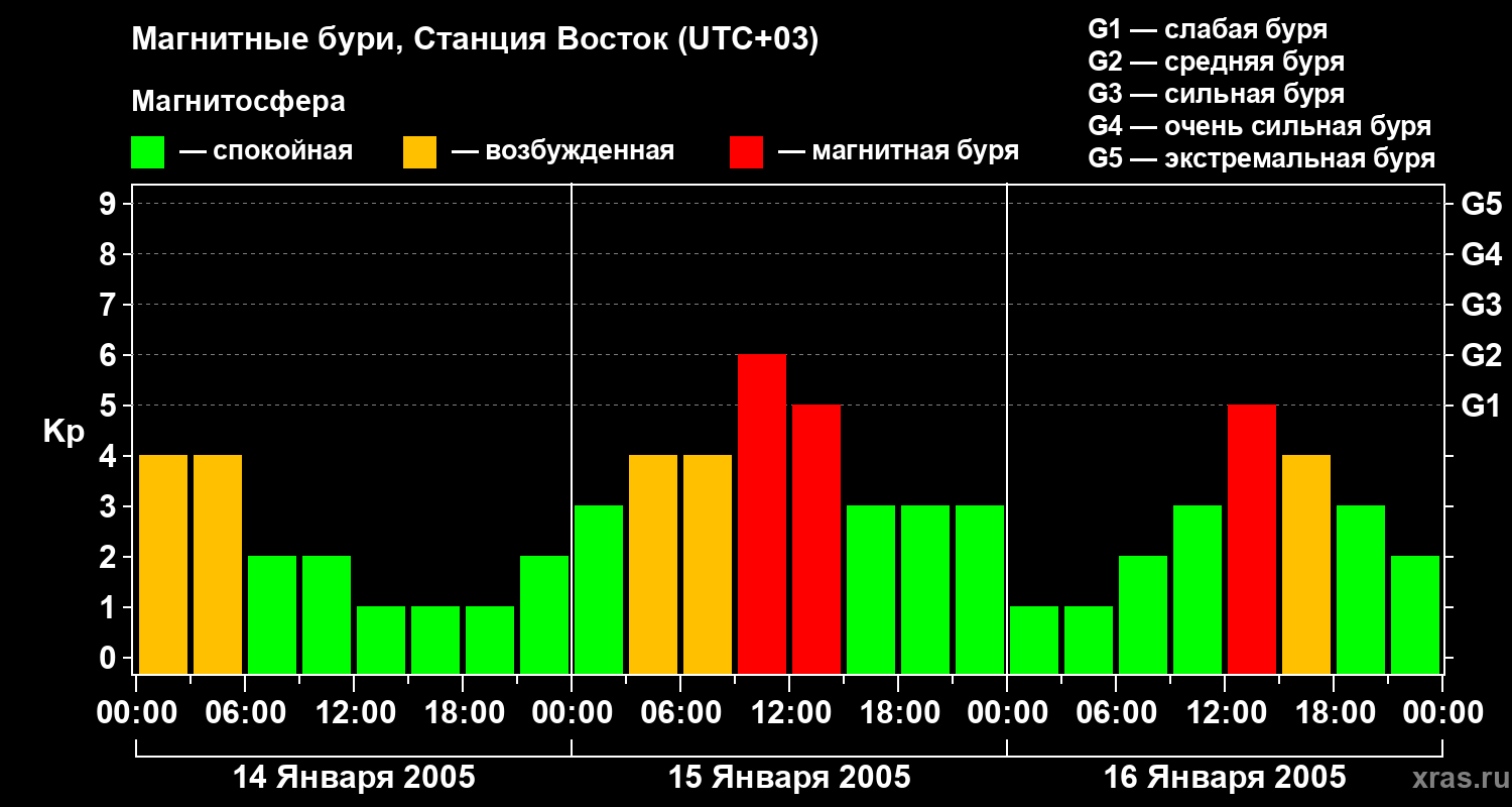 Магнитные бури локации Станция Восток — 16 января 2005 года