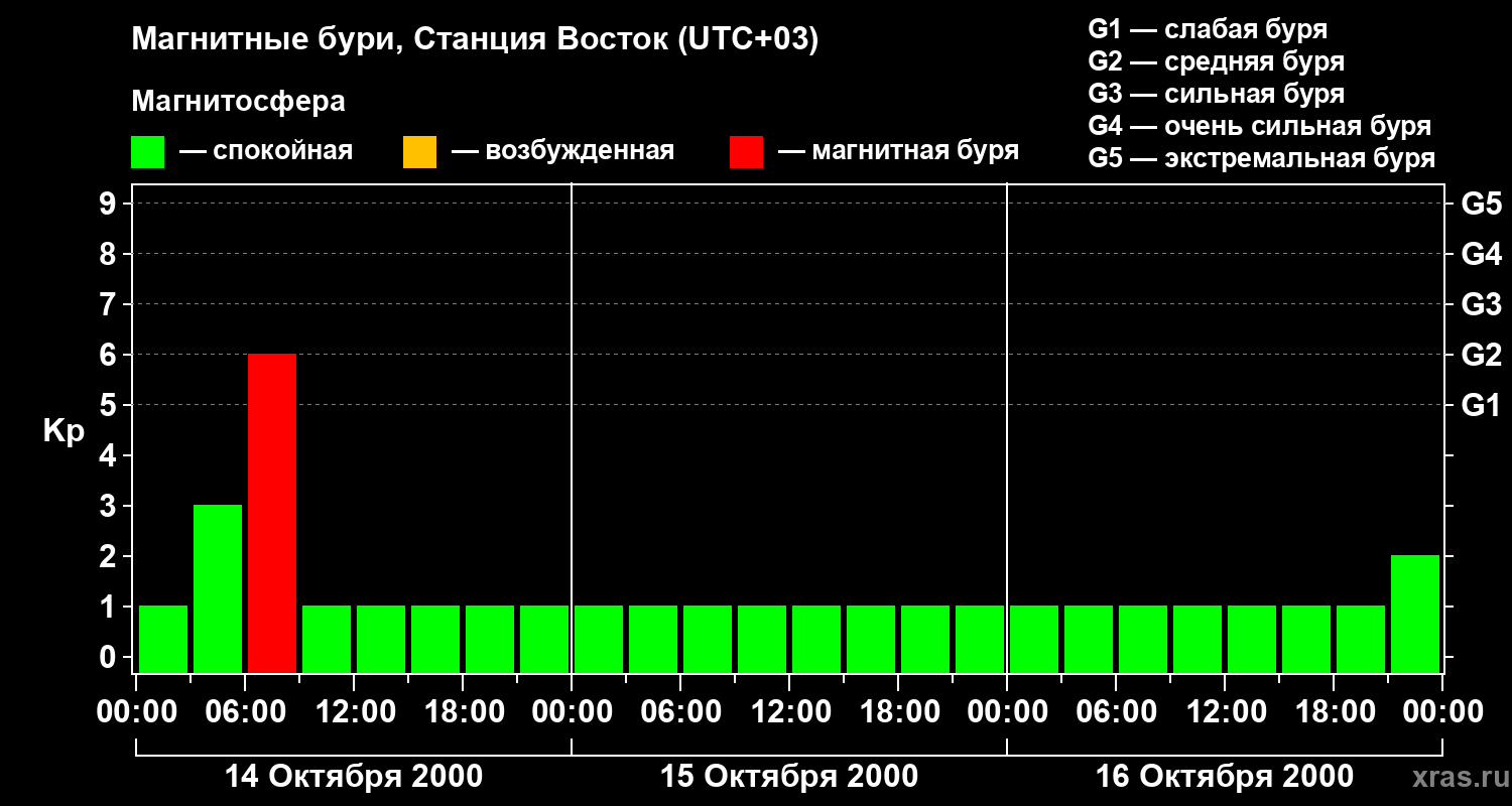 Магнитные бури локации Станция Восток — 16 октября 2000 года