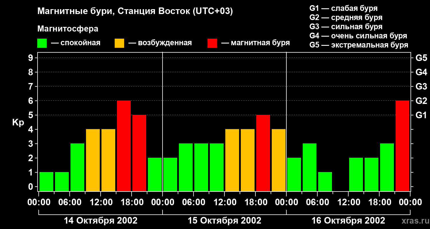 Магнитные бури локации Станция Восток — 16 октября 2002 года