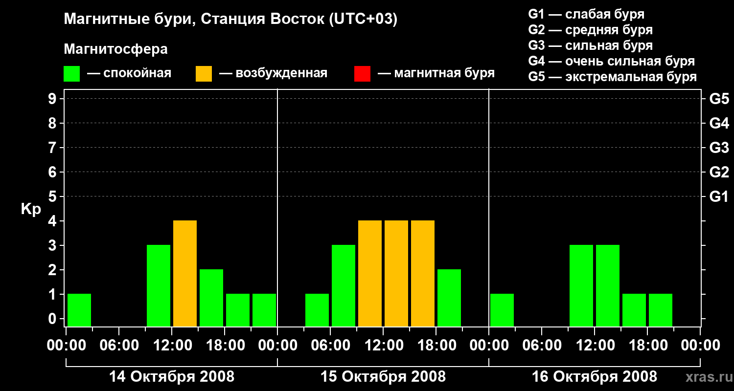 Магнитные бури локации Станция Восток 16 октября 2008 года