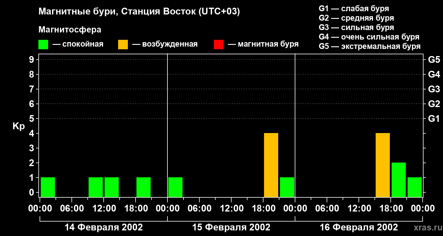 Магнитные бури локации Станция Восток — 16 февраля 2002 года