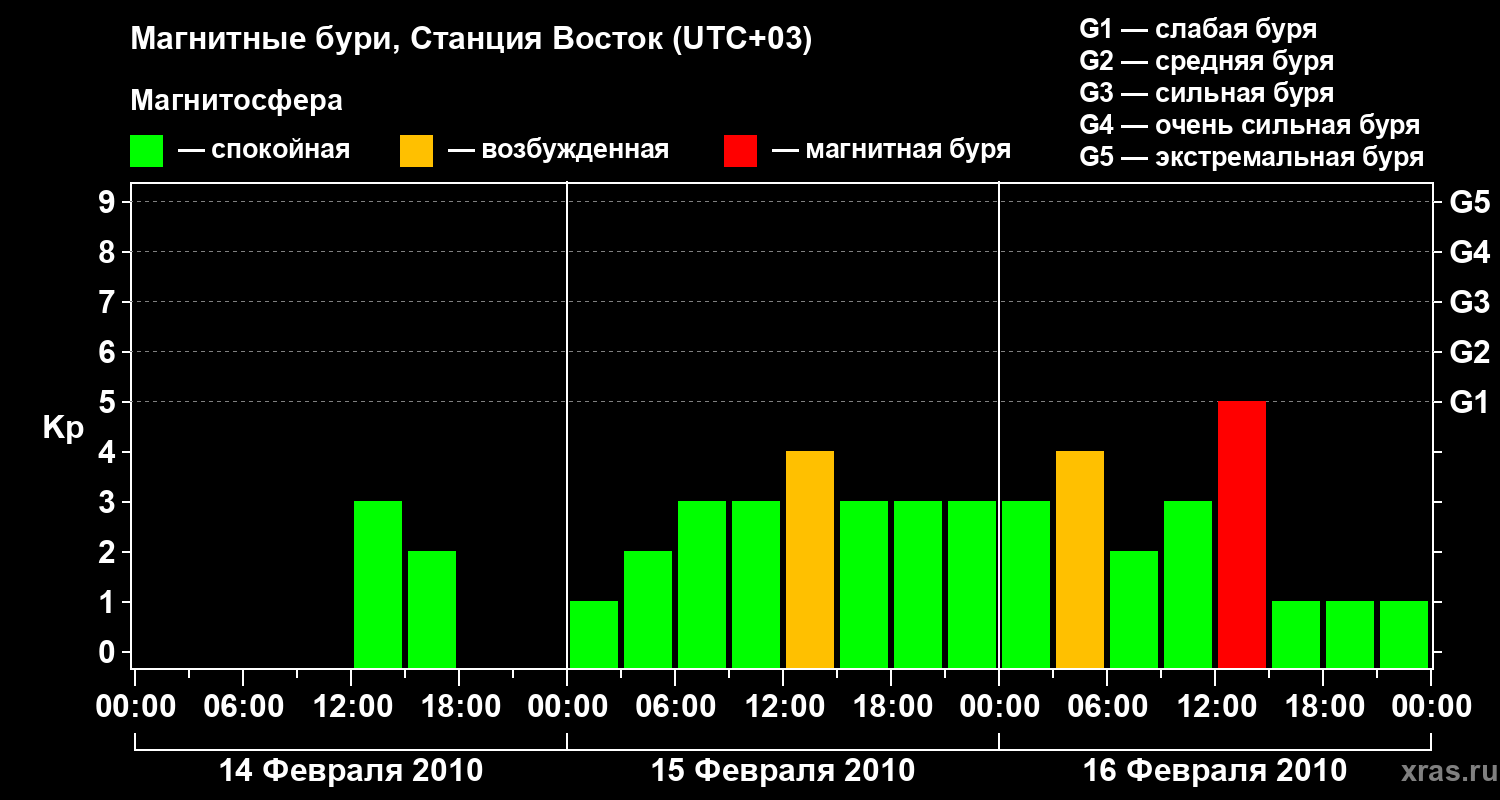 Магнитные бури локации Станция Восток — 16 февраля 2010 года