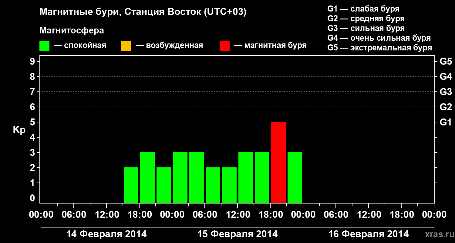 Магнитные бури локации Станция Восток в феврале 2014 года