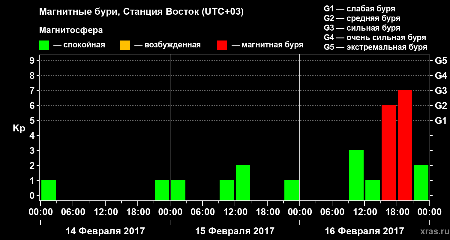 Магнитные бури локации Станция Восток — 16 февраля 2017 года