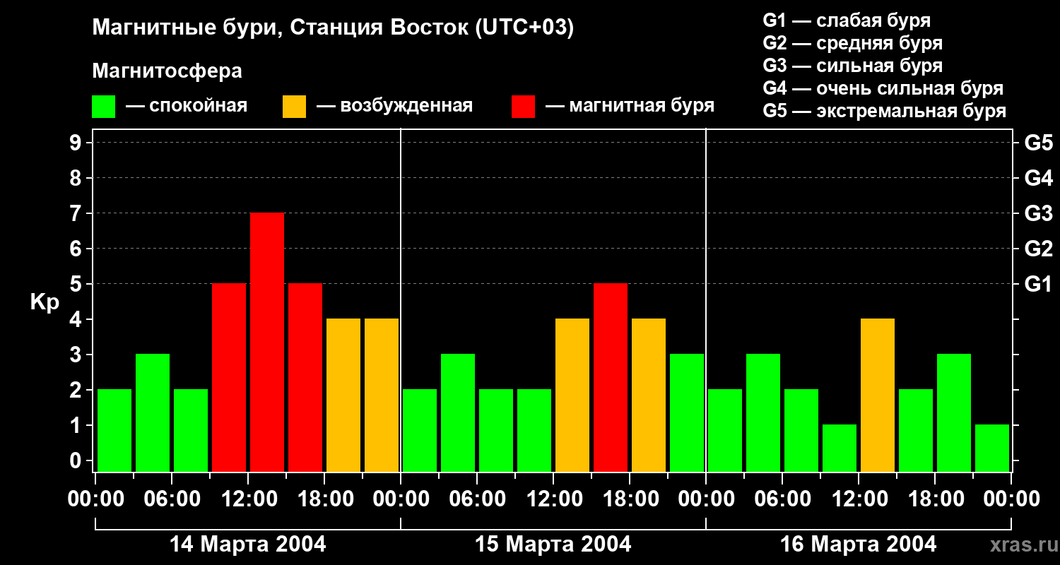 Магнитные бури локации Станция Восток в марте 2004 года