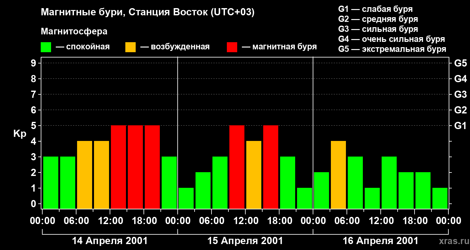 Магнитные бури локации Станция Восток — 16 апреля 2001 года