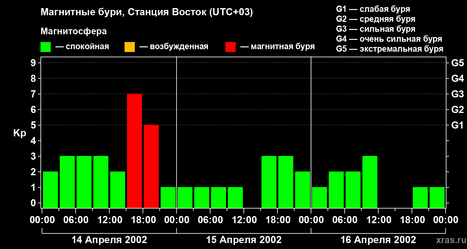 Магнитные бури локации Станция Восток — 16 апреля 2002 года
