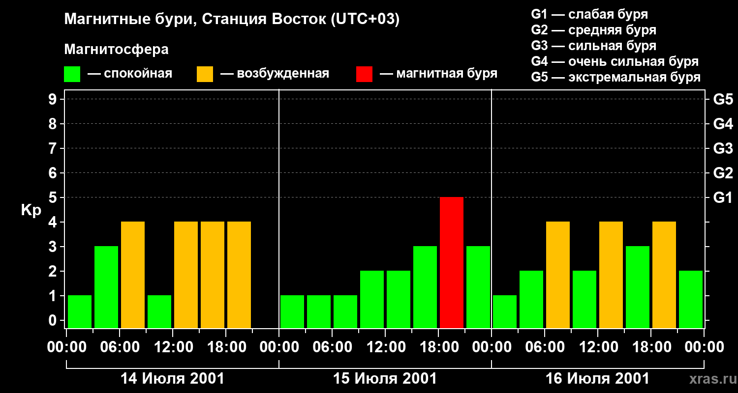 Магнитные бури локации Станция Восток — 16 июля 2001 года