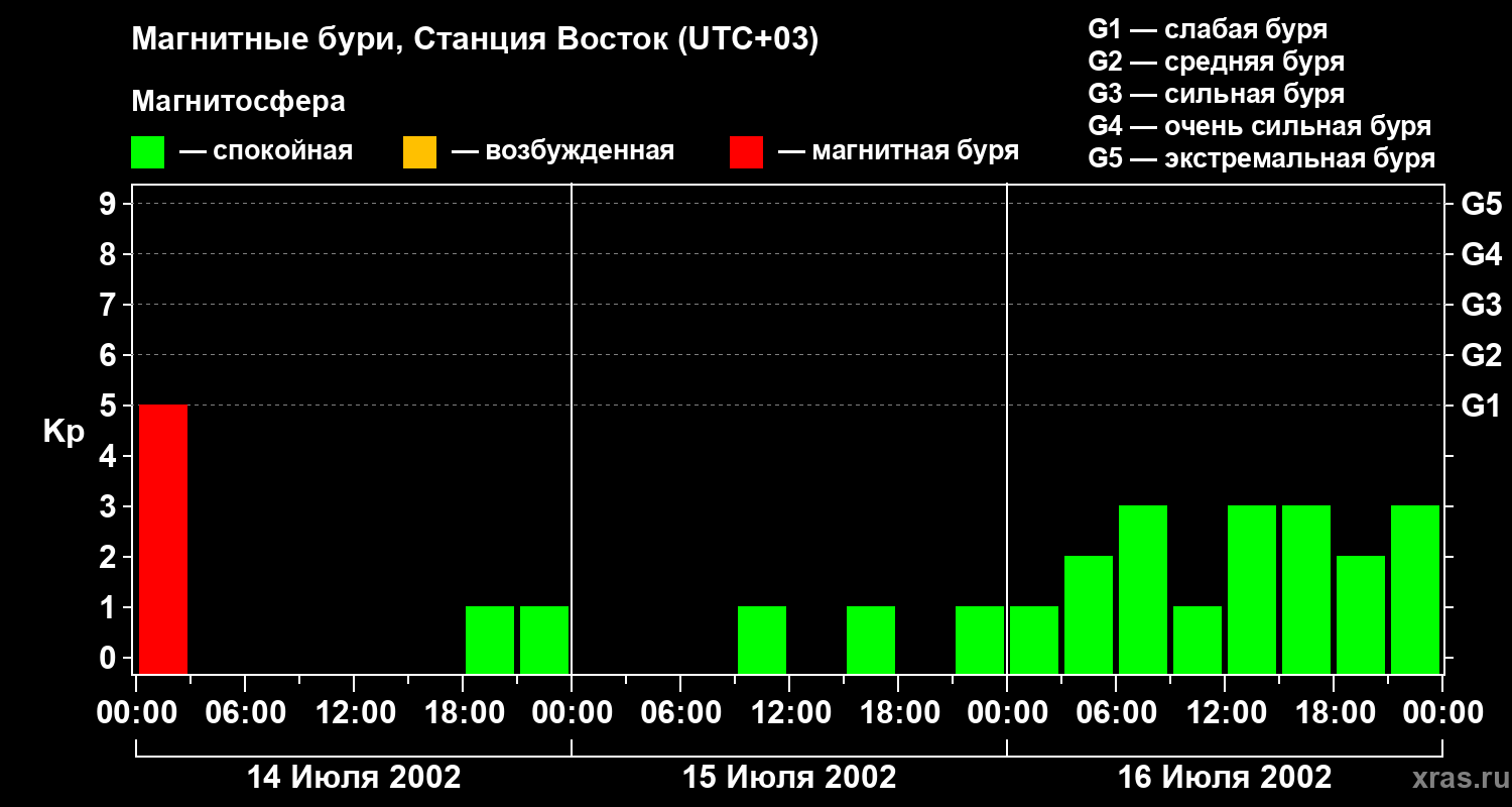 Магнитные бури локации Станция Восток — 16 июля 2002 года