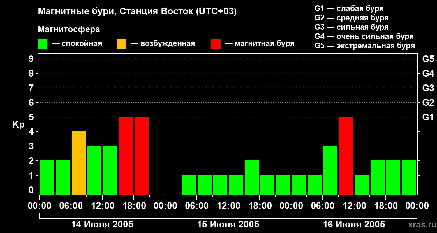 Магнитные бури локации Станция Восток — 16 июля 2005 года