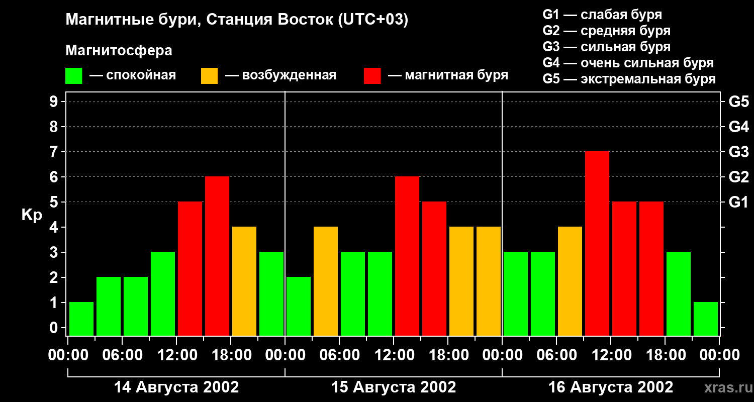 Магнитные бури локации Станция Восток — 16 августа 2002 года