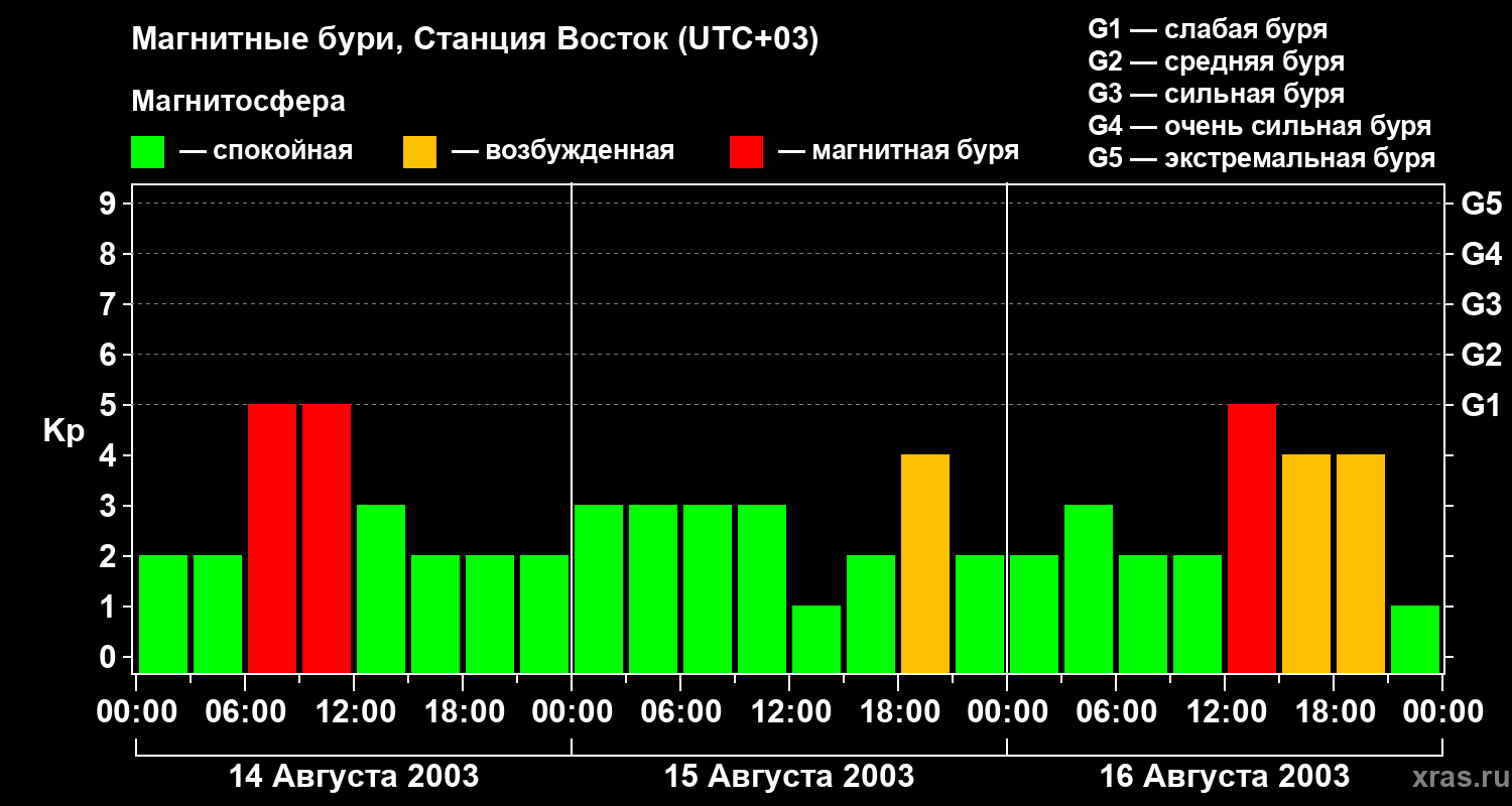 Магнитные бури локации Станция Восток — 16 августа 2003 года