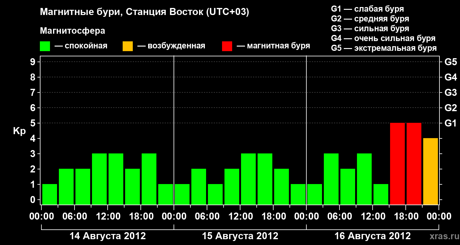 Магнитные бури локации Станция Восток — 16 августа 2012 года