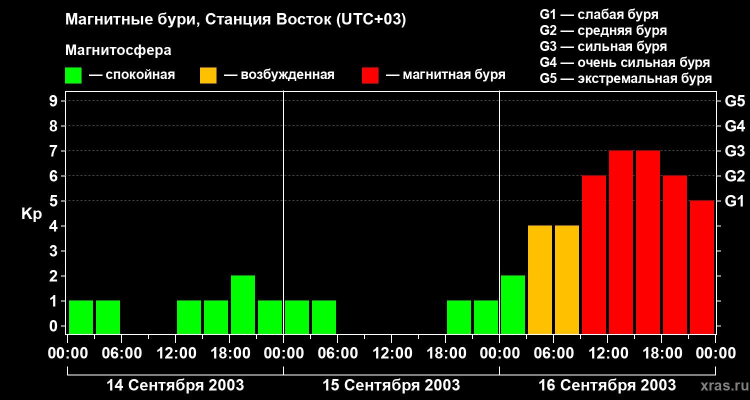 Магнитные бури локации Станция Восток в сентябре 2003 года