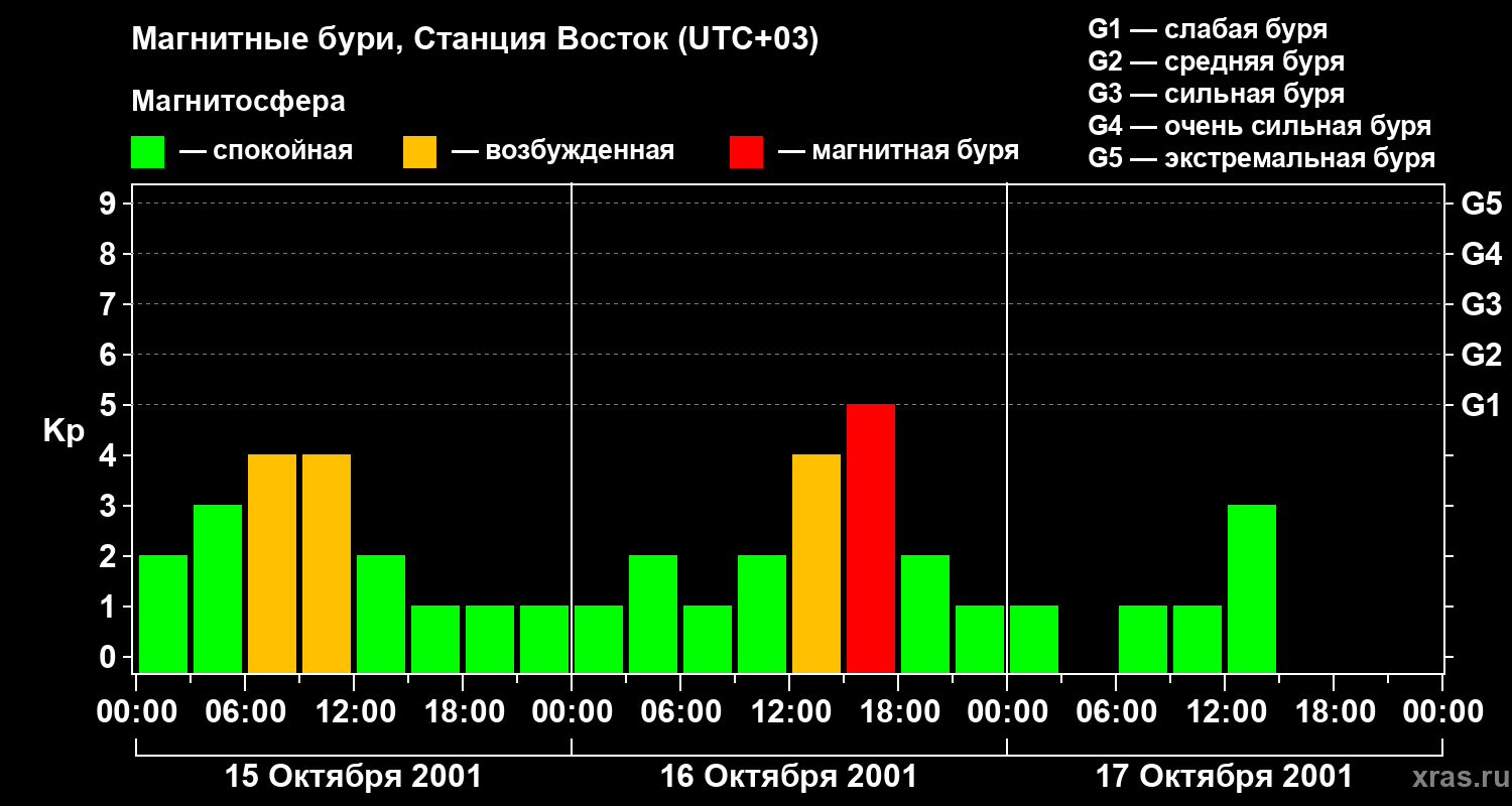 Магнитные бури локации Станция Восток — 17 октября 2001 года