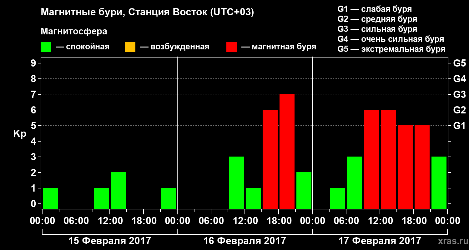 Магнитные бури локации Станция Восток — 17 февраля 2017 года