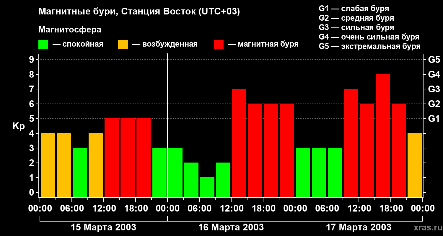 Магнитные бури локации Станция Восток в марте 2003 года