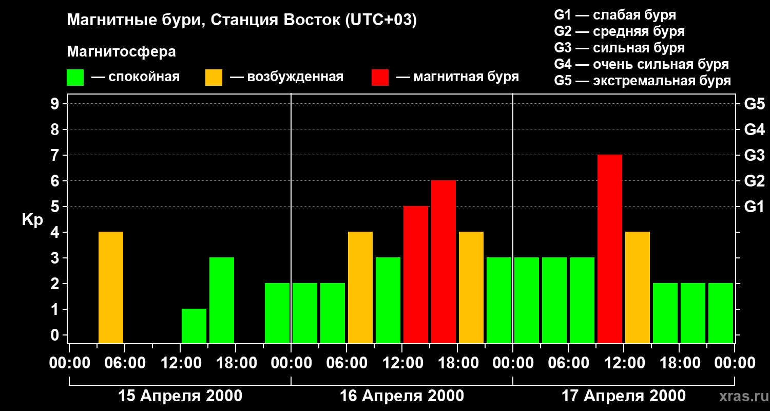 Магнитные бури локации Станция Восток — 17 апреля 2000 года