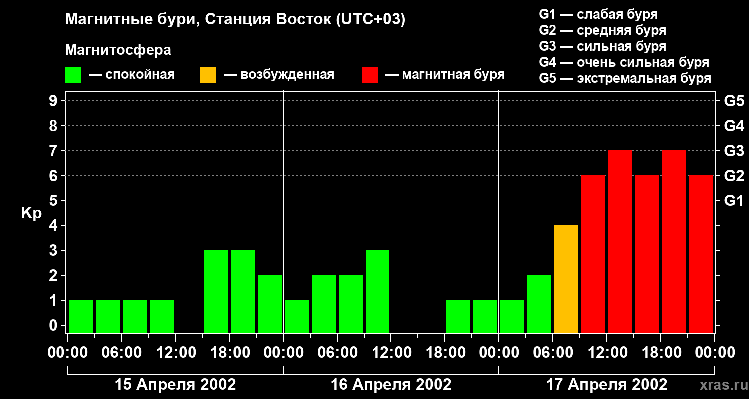 Магнитные бури локации Станция Восток — 17 апреля 2002 года