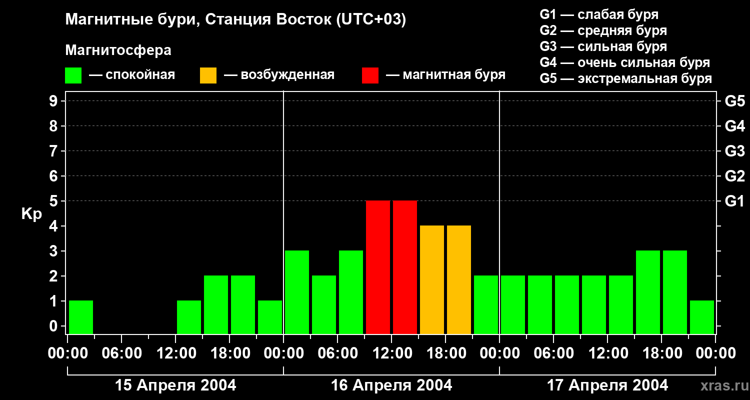 Магнитные бури локации Станция Восток — 17 апреля 2004 года
