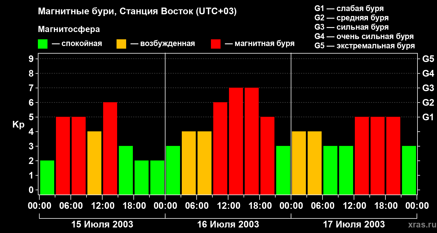 Магнитные бури локации Станция Восток — 17 июля 2003 года