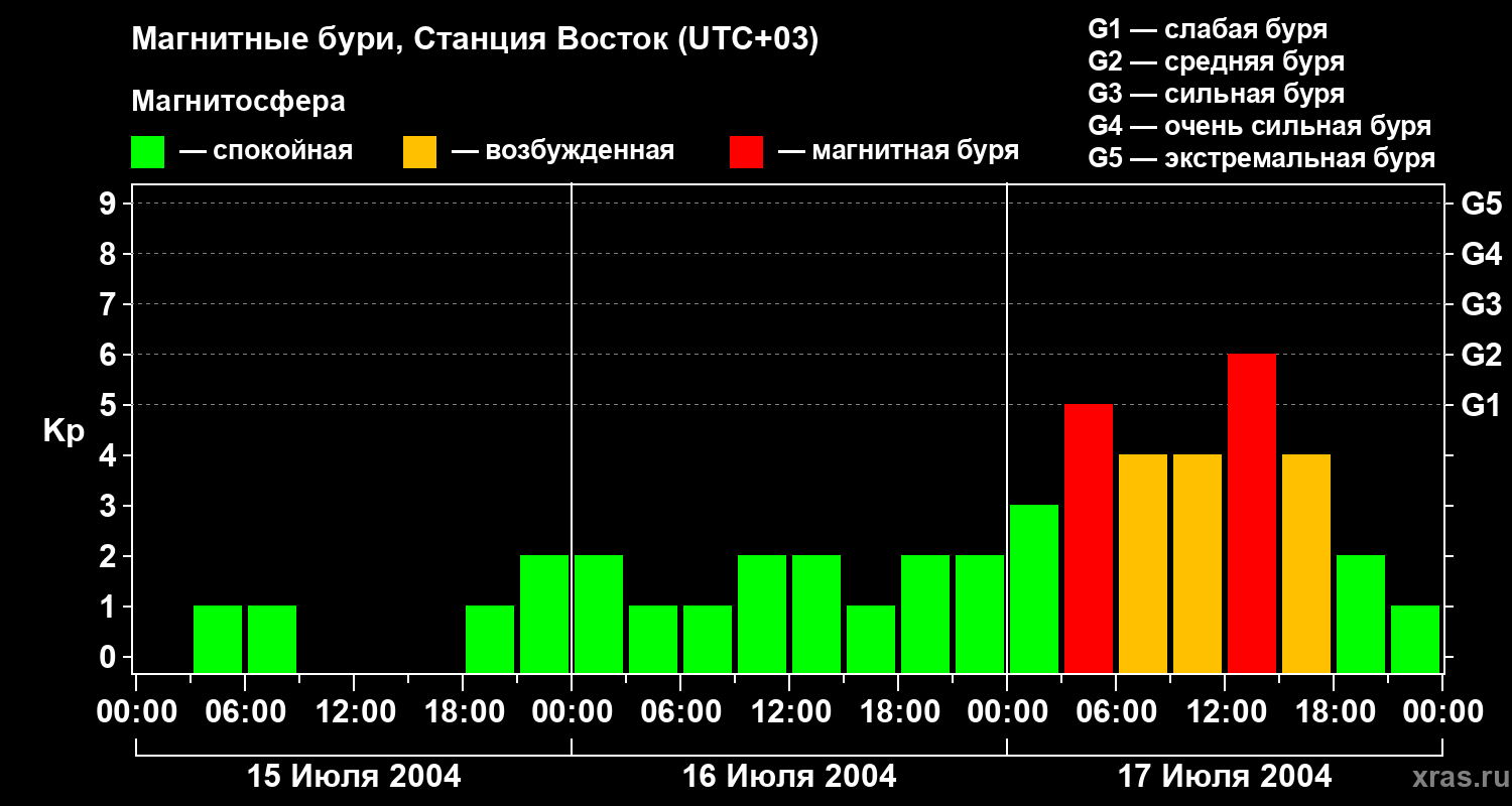 Магнитные бури локации Станция Восток — 17 июля 2004 года