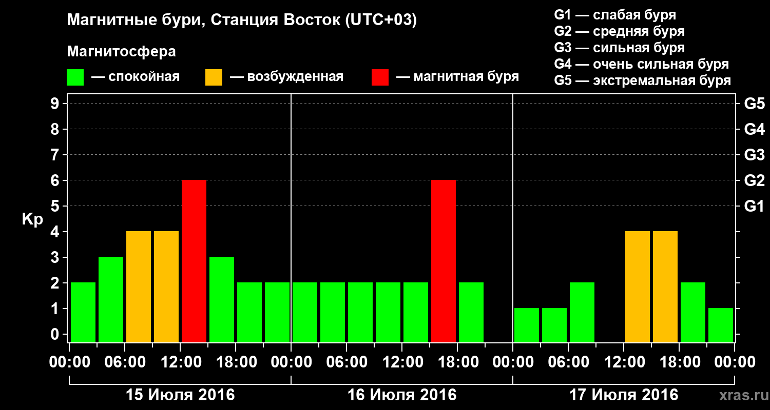 Магнитные бури локации Станция Восток — 17 июля 2016 года