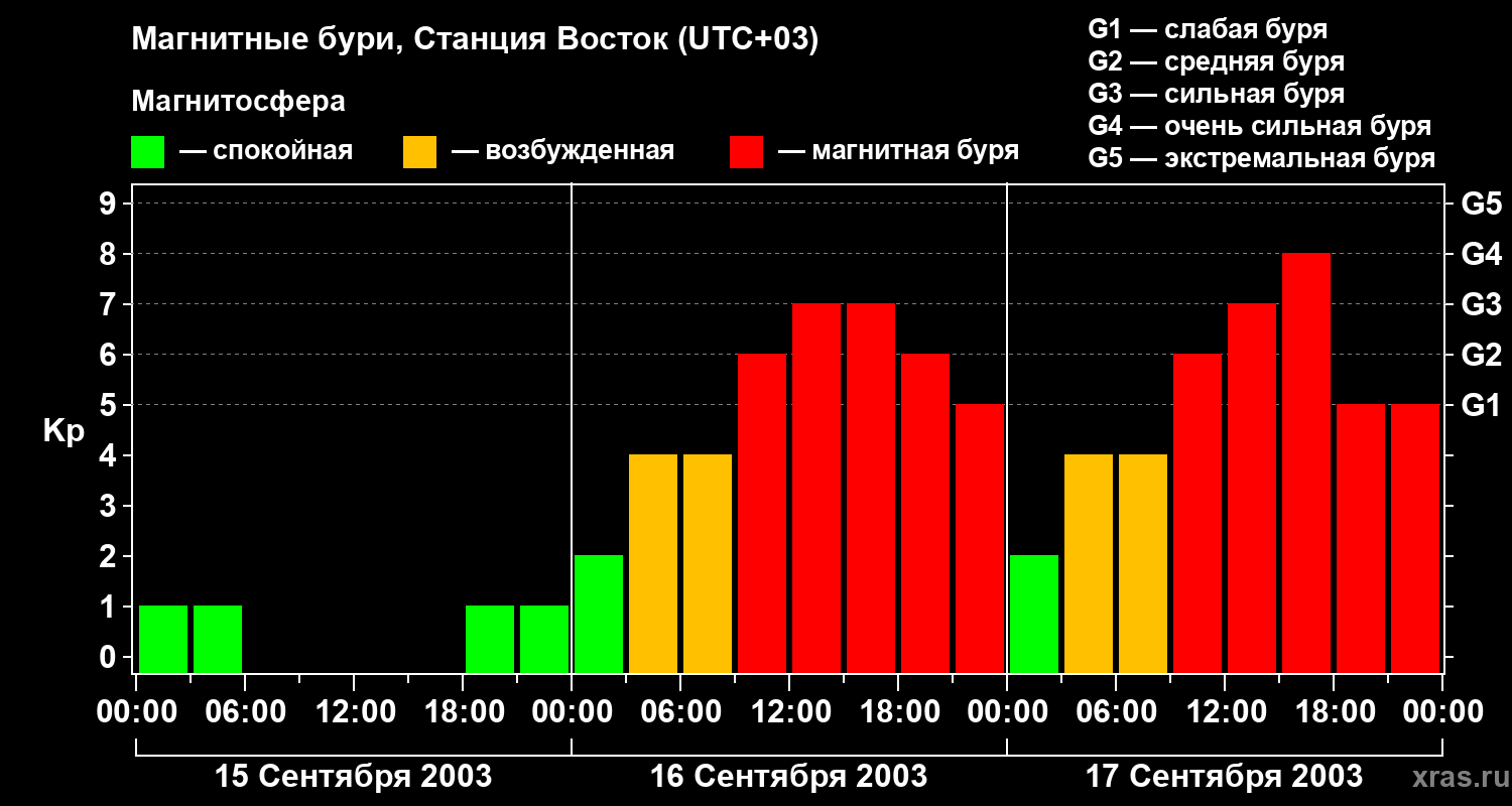 Магнитные бури локации Станция Восток в сентябре 2003 года