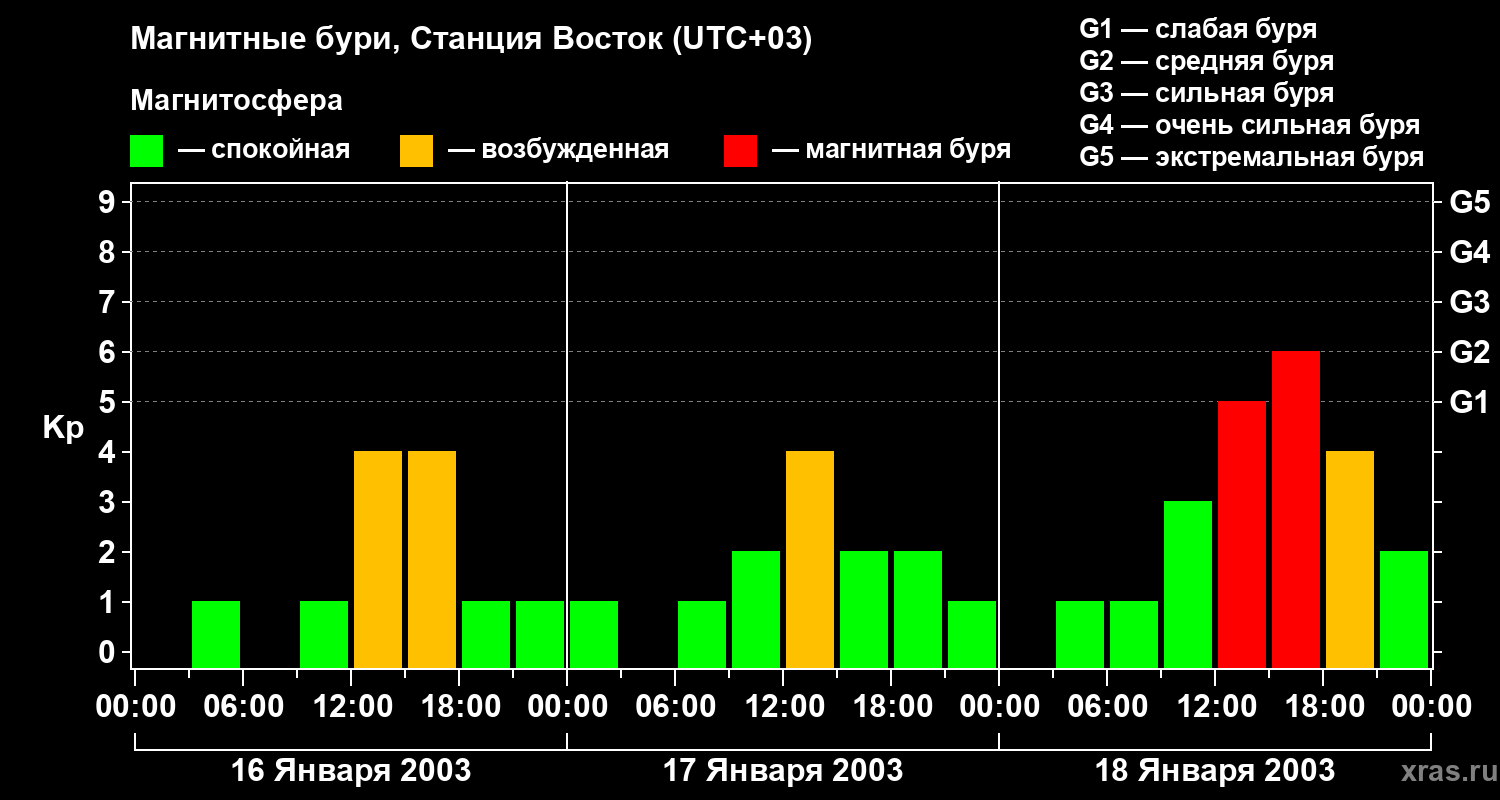 Магнитные бури локации Станция Восток — 18 января 2003 года