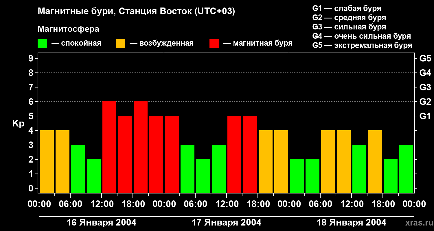 Магнитные бури локации Станция Восток — 18 января 2004 года