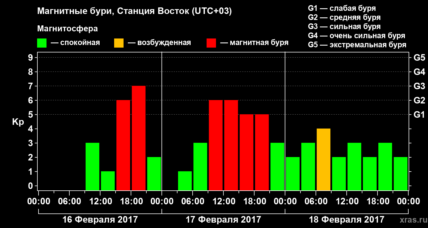 Магнитные бури локации Станция Восток — 18 февраля 2017 года