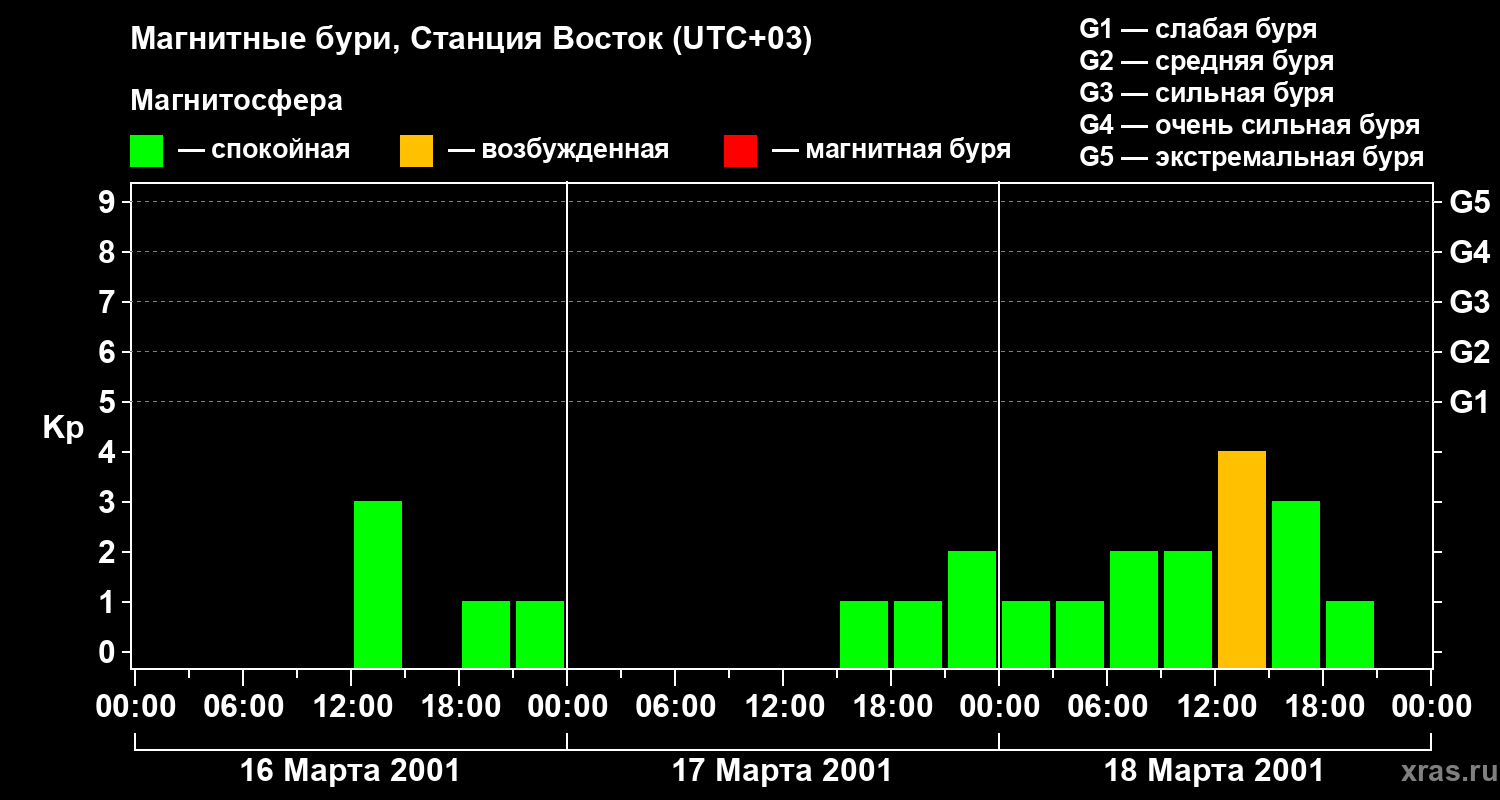Магнитные бури локации Станция Восток — 18 марта 2001 года