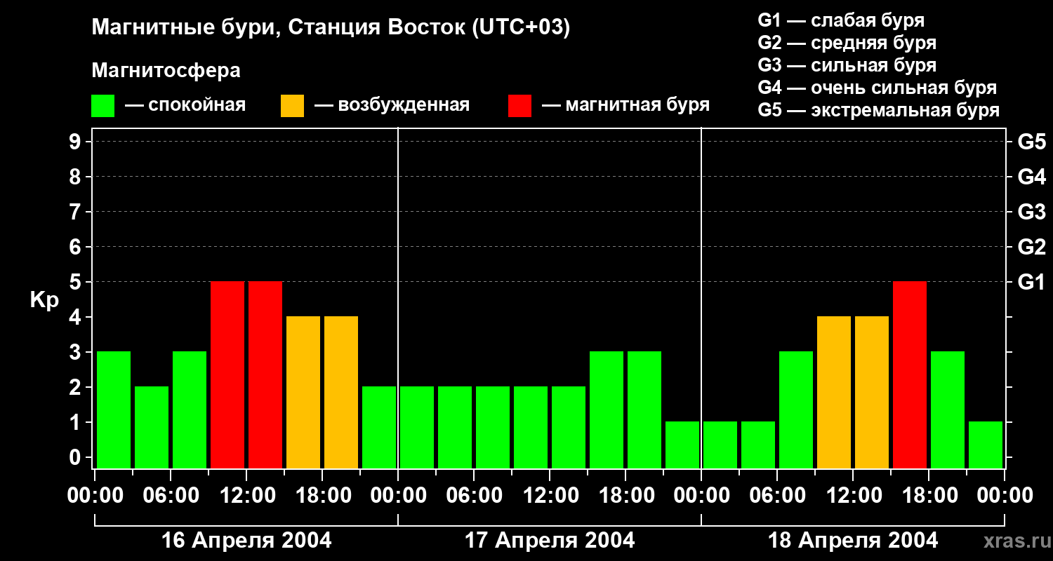 Магнитные бури локации Станция Восток — 18 апреля 2004 года