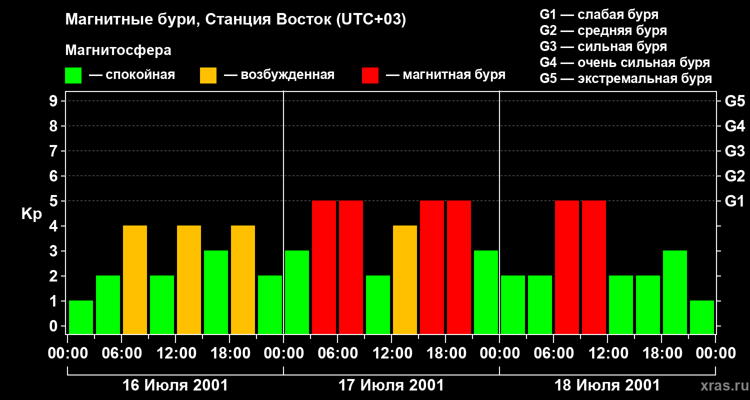 Магнитные бури локации Станция Восток — 18 июля 2001 года