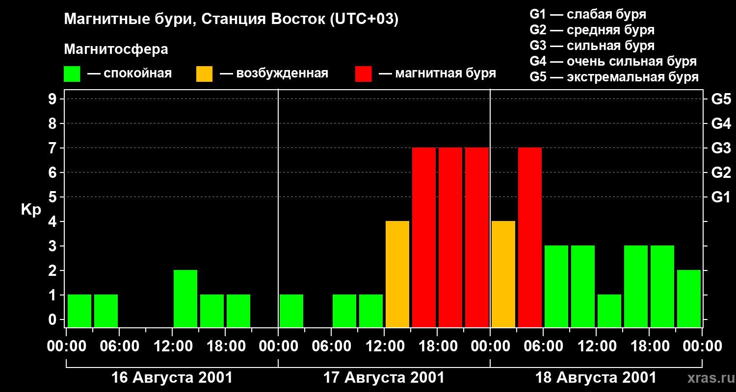 Магнитные бури локации Станция Восток — 18 августа 2001 года