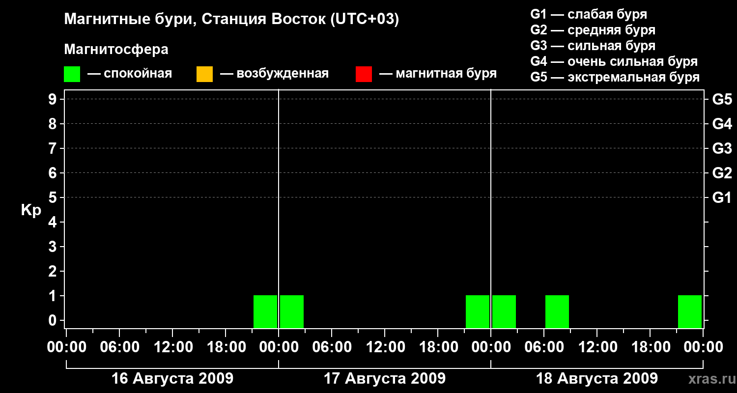 Магнитные бури локации Станция Восток — 18 августа 2009 года