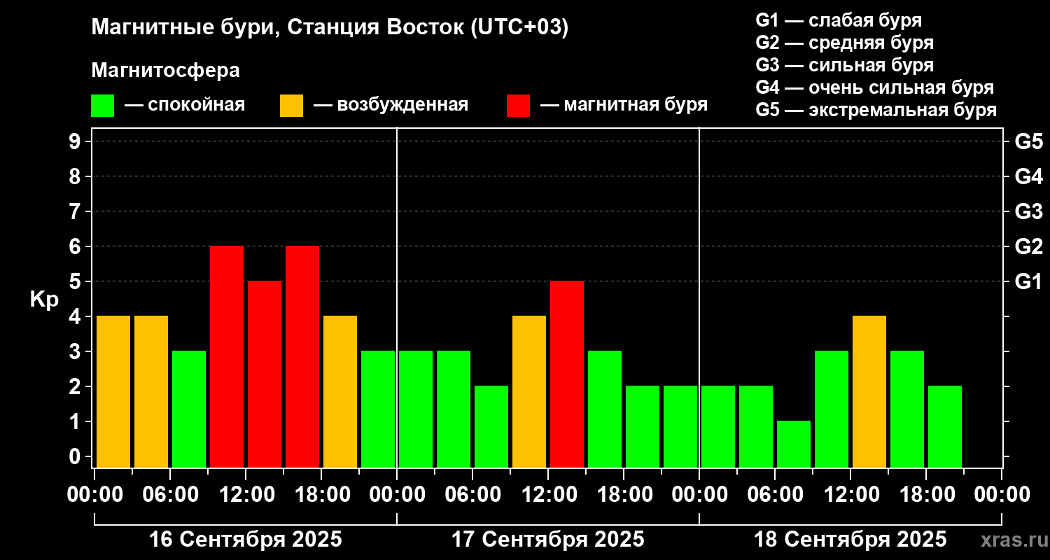 Магнитные бури локации Станция Восток 18 сентября 2025 года