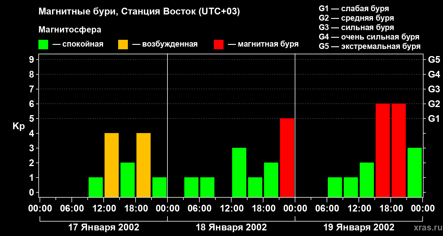 Магнитные бури локации Станция Восток — 19 января 2002 года