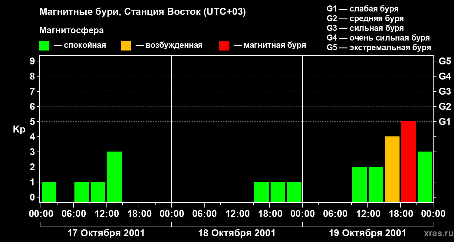 Магнитные бури локации Станция Восток — 19 октября 2001 года