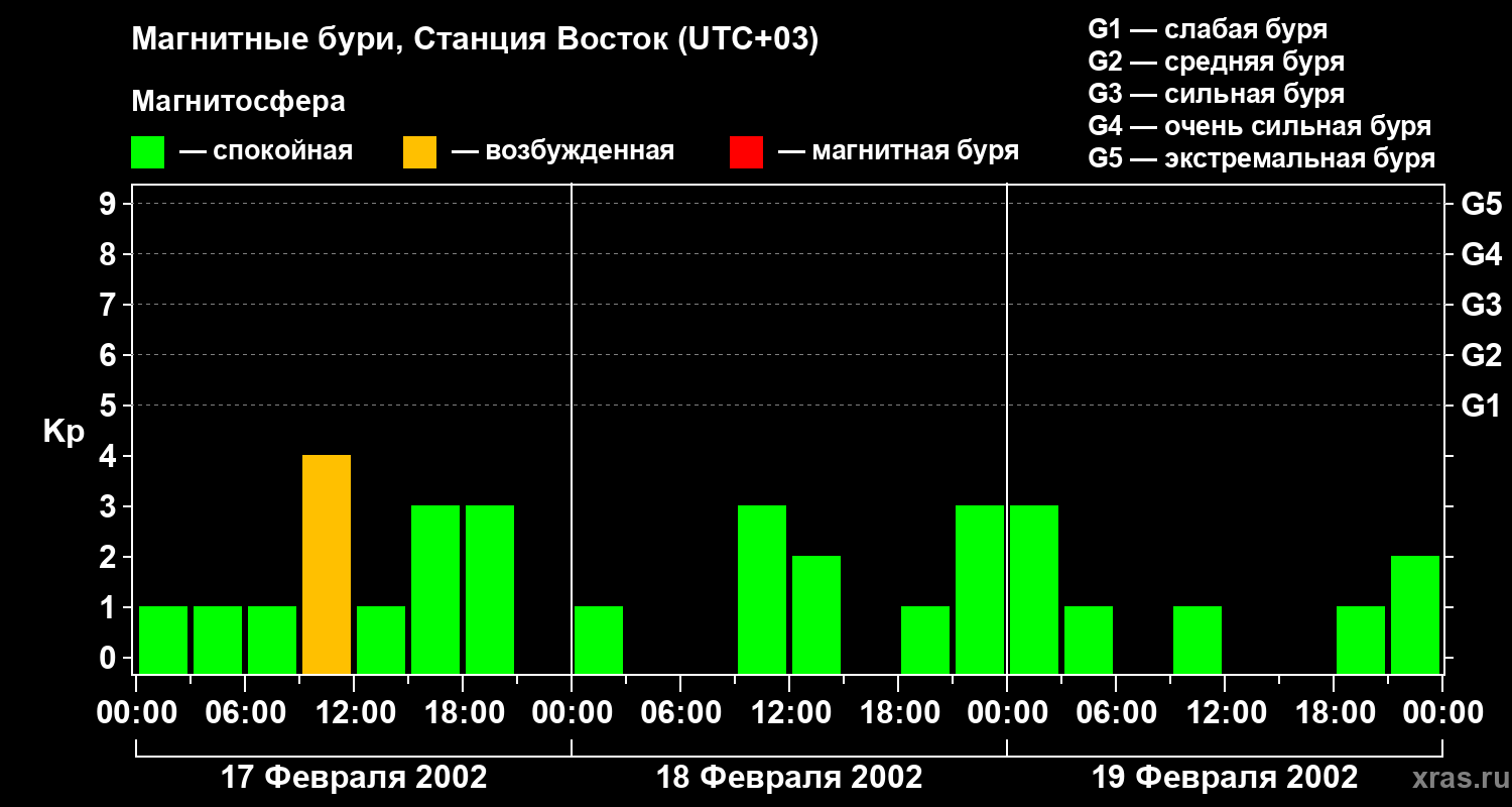 Магнитные бури локации Станция Восток — 19 февраля 2002 года