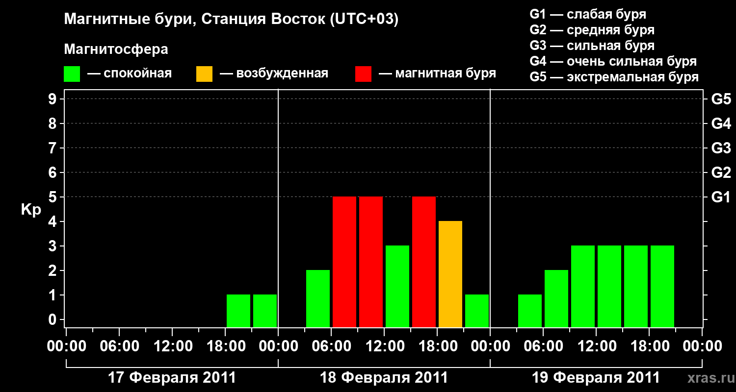 Магнитные бури локации Станция Восток в феврале 2011 года