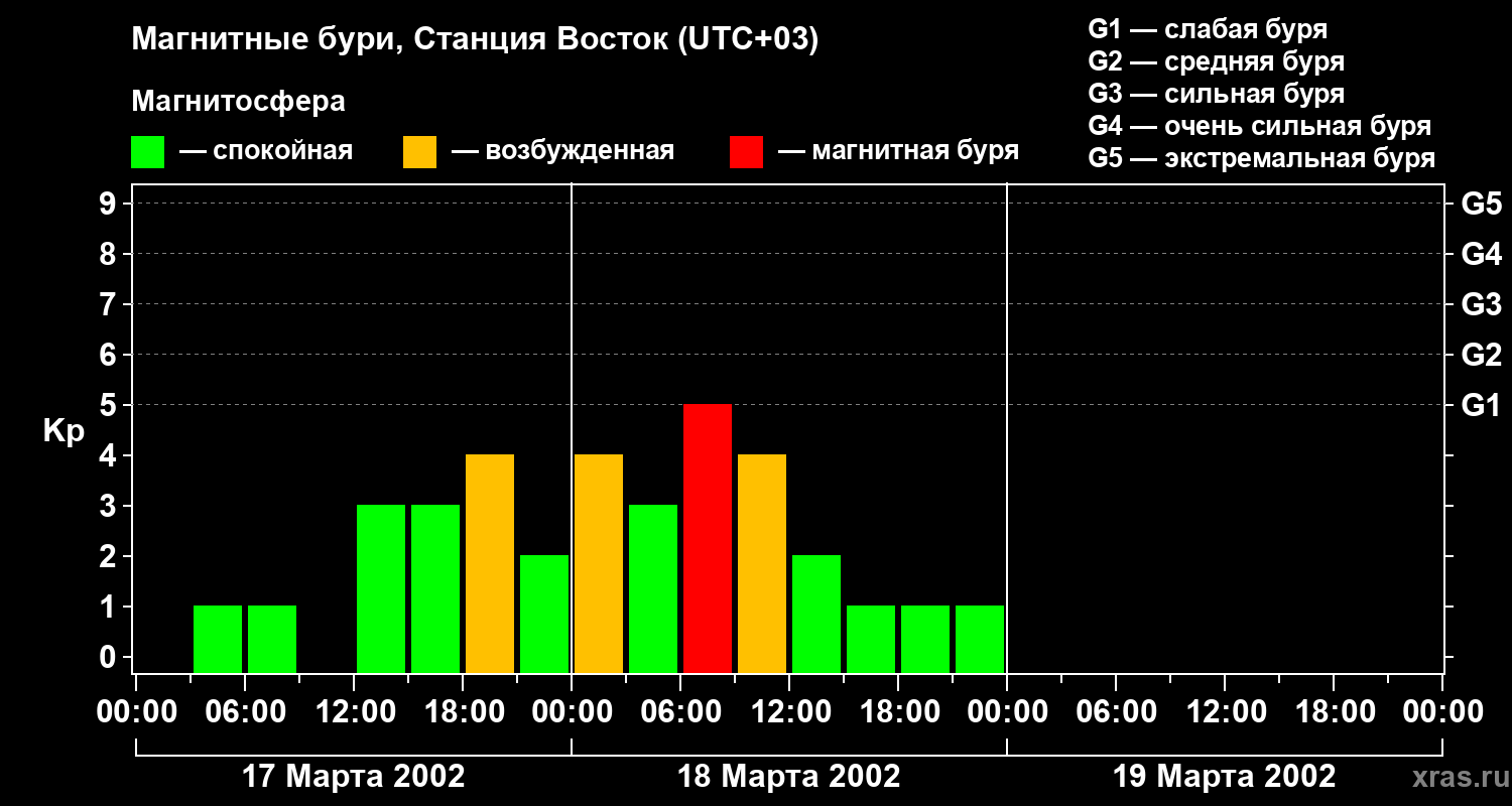 Магнитные бури локации Станция Восток — 19 марта 2002 года
