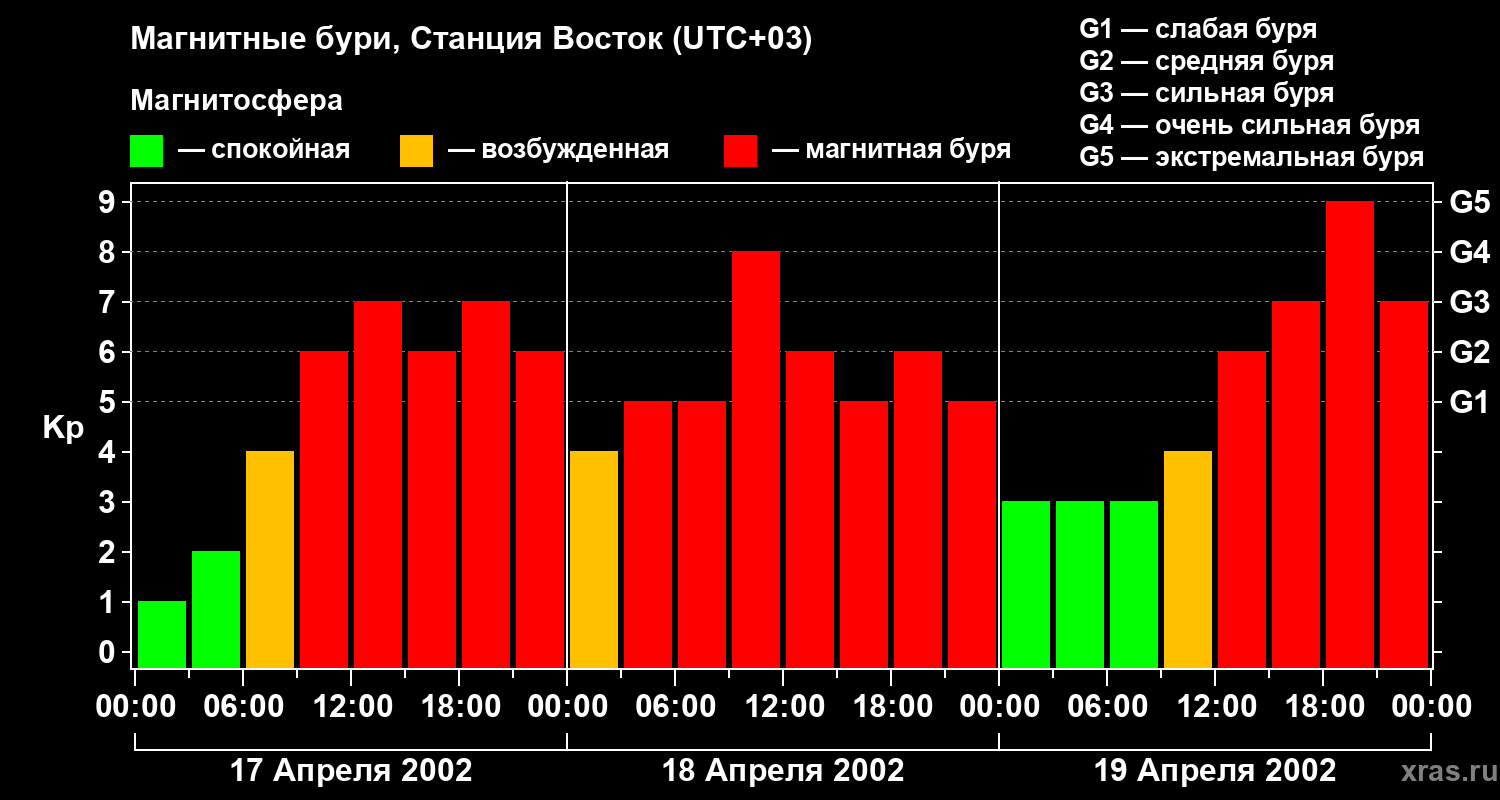 Магнитные бури локации Станция Восток — 19 апреля 2002 года