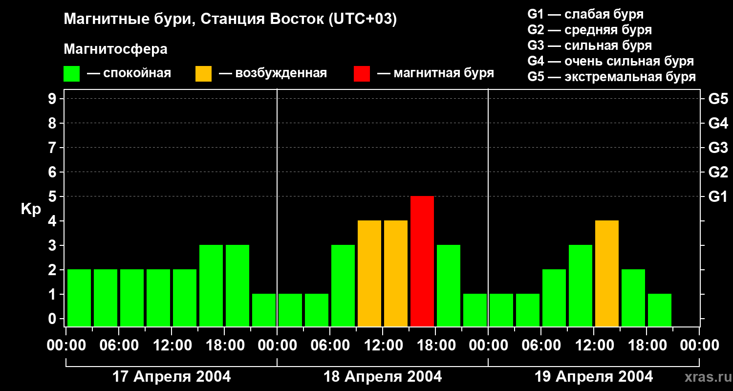 Магнитные бури локации Станция Восток — 19 апреля 2004 года