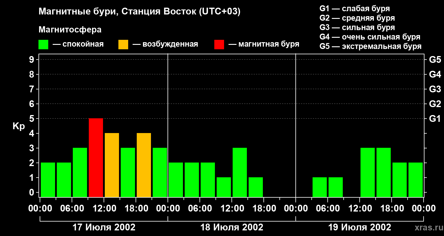 Магнитные бури локации Станция Восток — 19 июля 2002 года