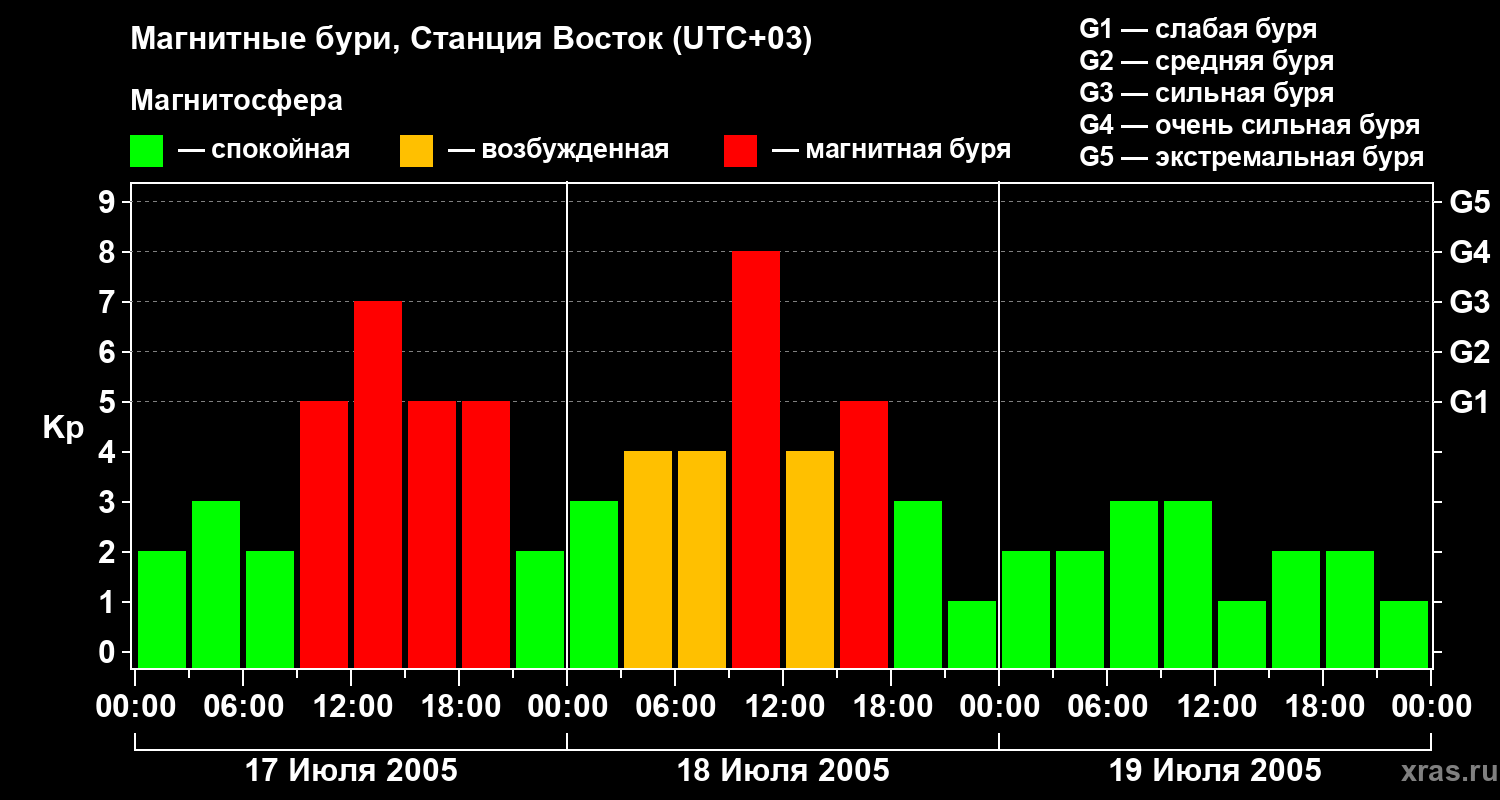 Магнитные бури локации Станция Восток 19 июля 2005 года